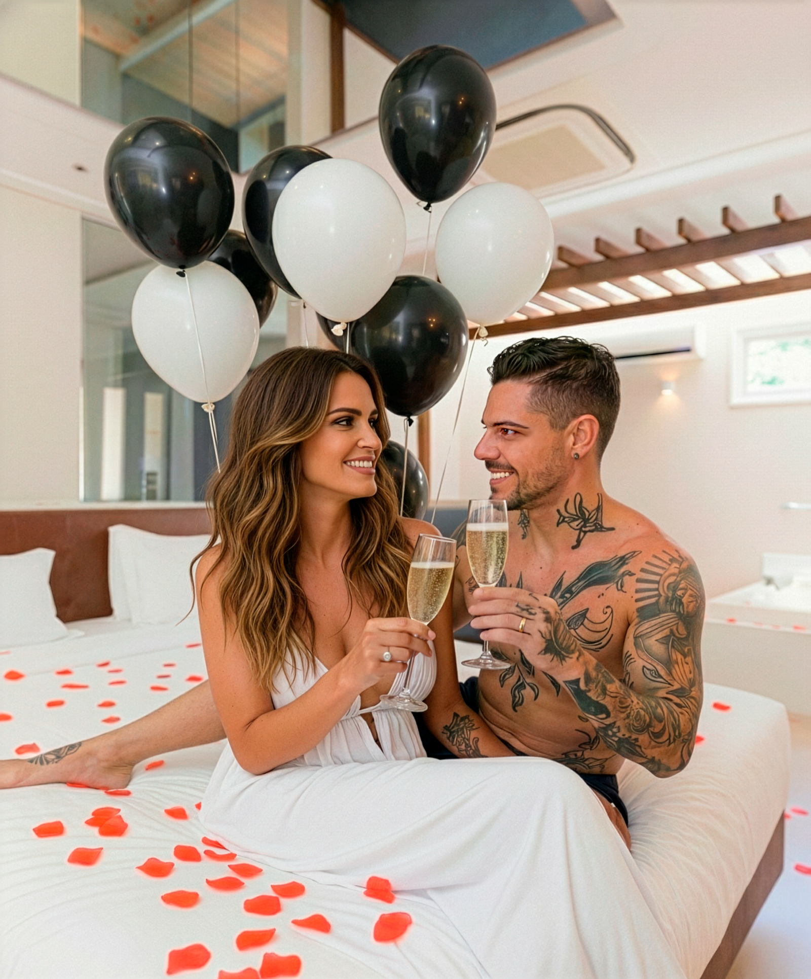 A melhor suíte com ampla hidromassagem, piscina aquecida e teto solar, ideal para um banho com vista para as estrelas para confraternizações intimistas.