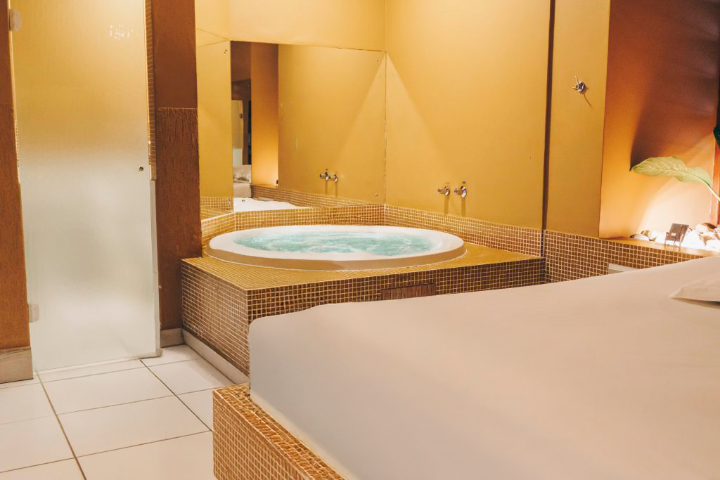 Espaços perfeitos para uma pausa no meio da rotina. As suítes contam com hidromassagens confortáveis para um banho relaxante em boa companhia.